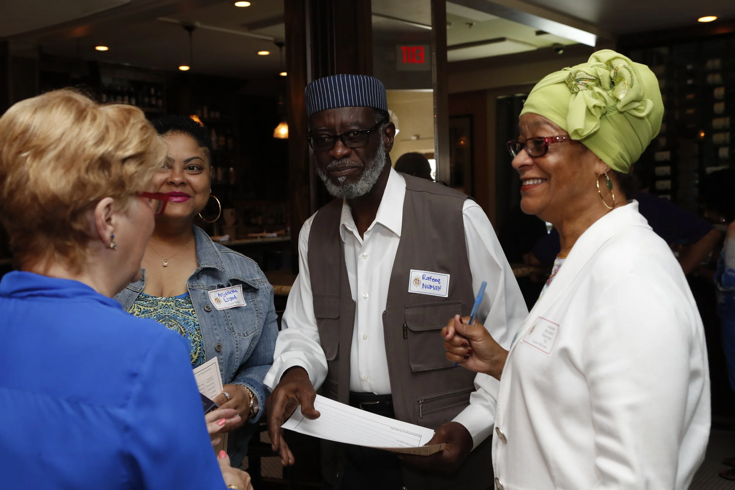 Joyce Nu’Man (right), with her daughter and husband, catch up with Sharon Rodi at the AEC 2018 Reunion